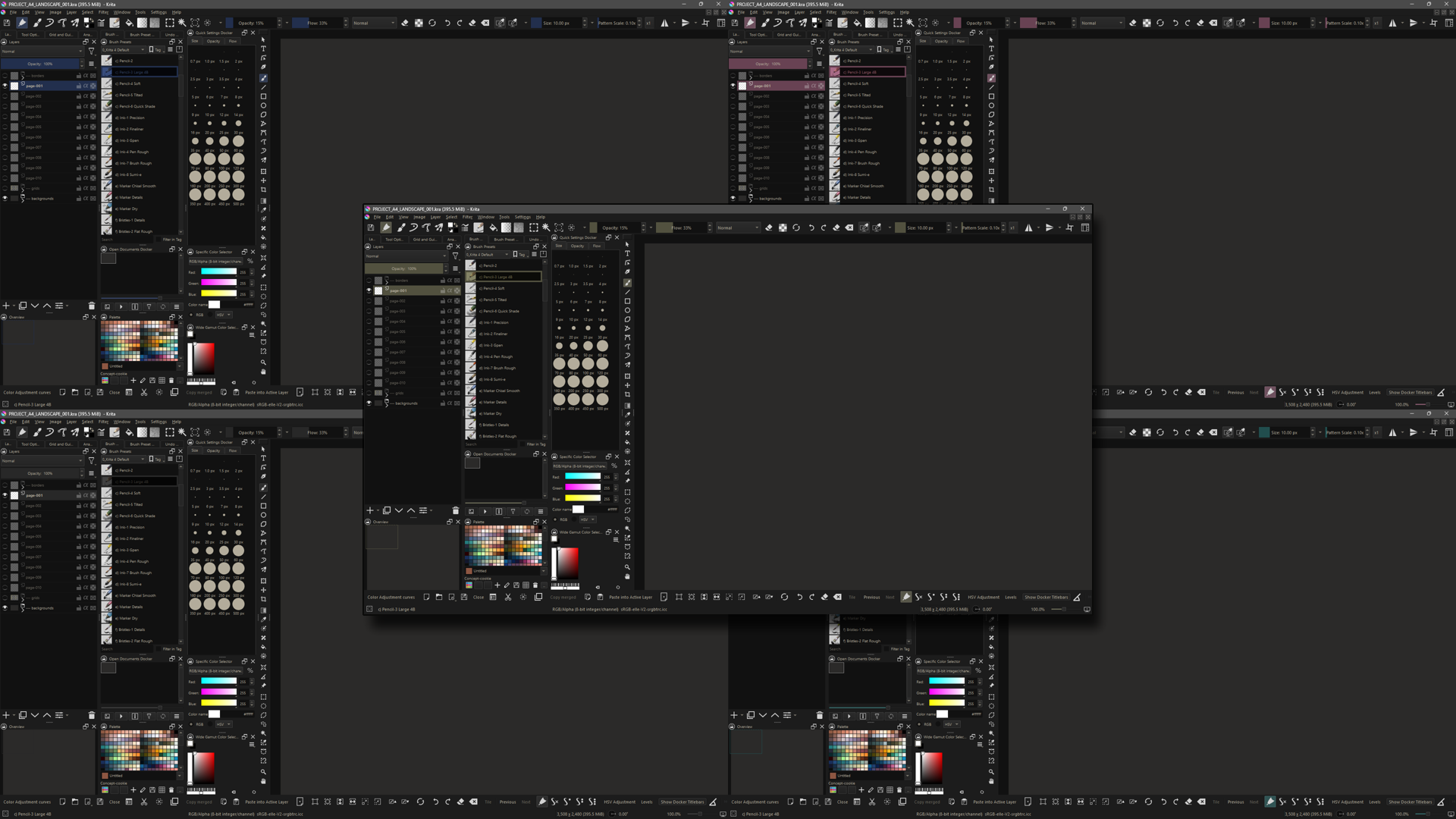 IMPORTANT NOTE: These are color-scheme themes, in your Krita only colors will change using these themes. The screenshots were made with workspace/toolbars/dockers settings greatly modified in my Krita (some of them have been modified to better show how the theme colors will look with different elements).