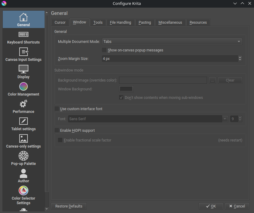 once it’s done, you can restart krita and it should work. Open several documents and test it either by right clicking on the tab bar and seeing a context menu, or clicking on the 3 dots at the right end of the tab bar, as such