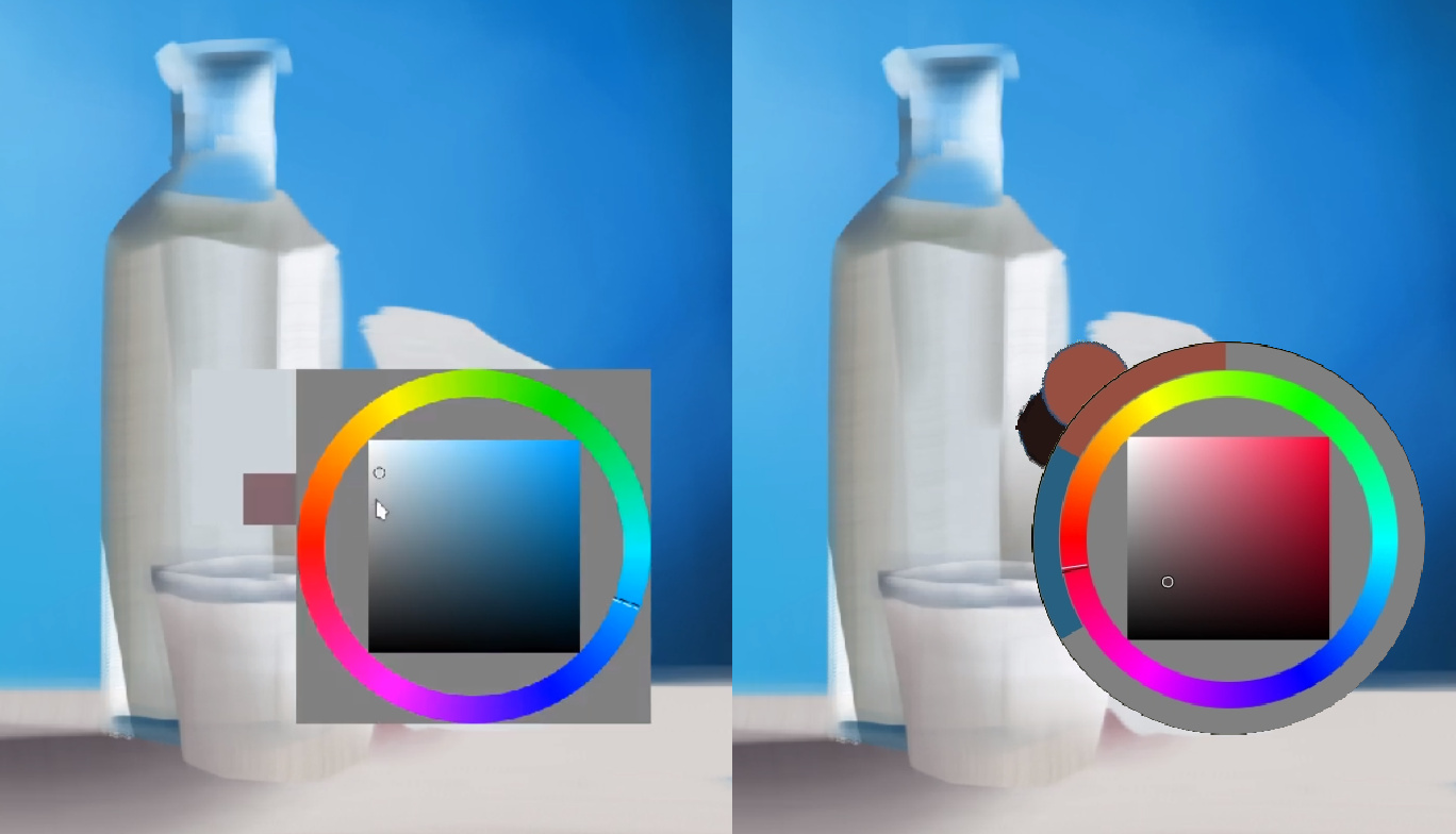 How about changing the look of the “show color selector” (shift+i) like that: