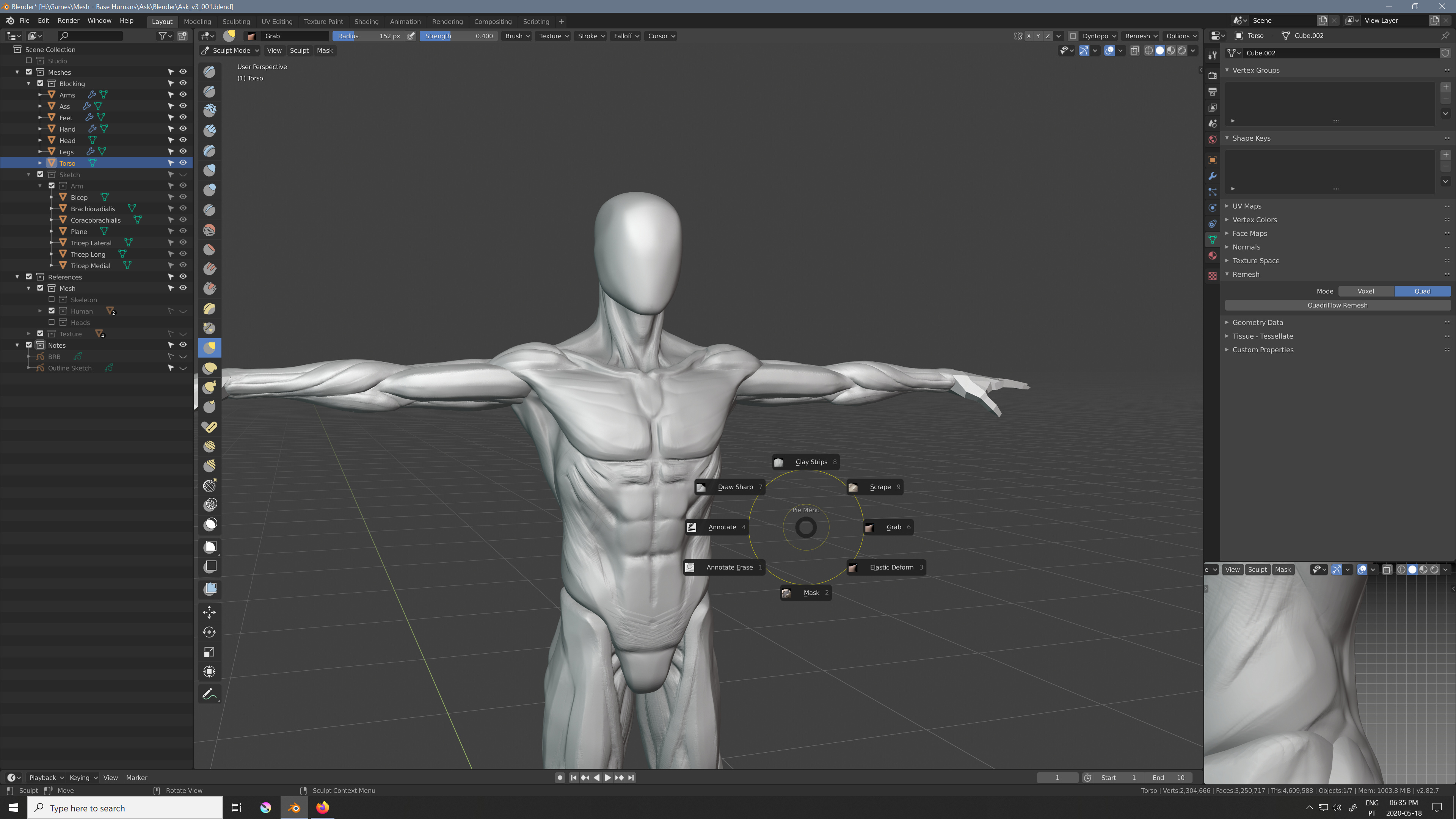 Here when I press the “W” key shortcut I am able to access these brushes under the context of sculpting that I have been using.