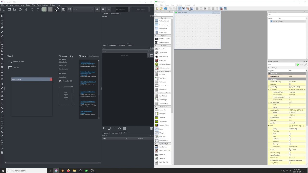 I am more familiar with PyQt5 and QtDesigner than Qt with QtCreator, itself because I was more inclined to be in Python than in C++. Though the idea to shift to C++ has gone through my mind several times when I was in Krita (but my computer hates Linux, don’t ask me why it just refuses too). But I am finally in blender now so more Python for me.