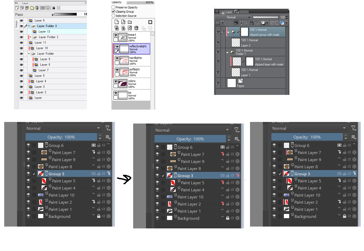 The thing is: it takes a bit to get used to it (specially if someone’s coming from another program), and organization-wise, clipping makes the layer stack way cleaner (e.g.: make a layer to clip a group instead of making another group to add my desired group to clip)