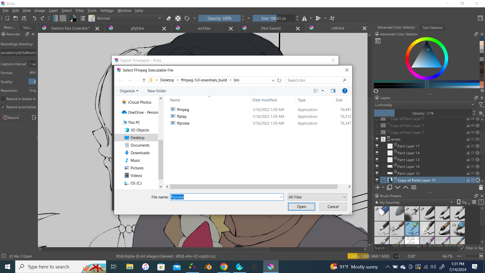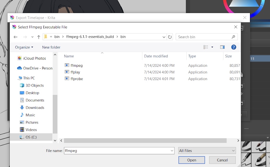 I updated Krita and tried adding ffmpeg 6.1.1 but it won’t let me. It only has the ffmpeg that was there beforehand. I don’t know what to do😭