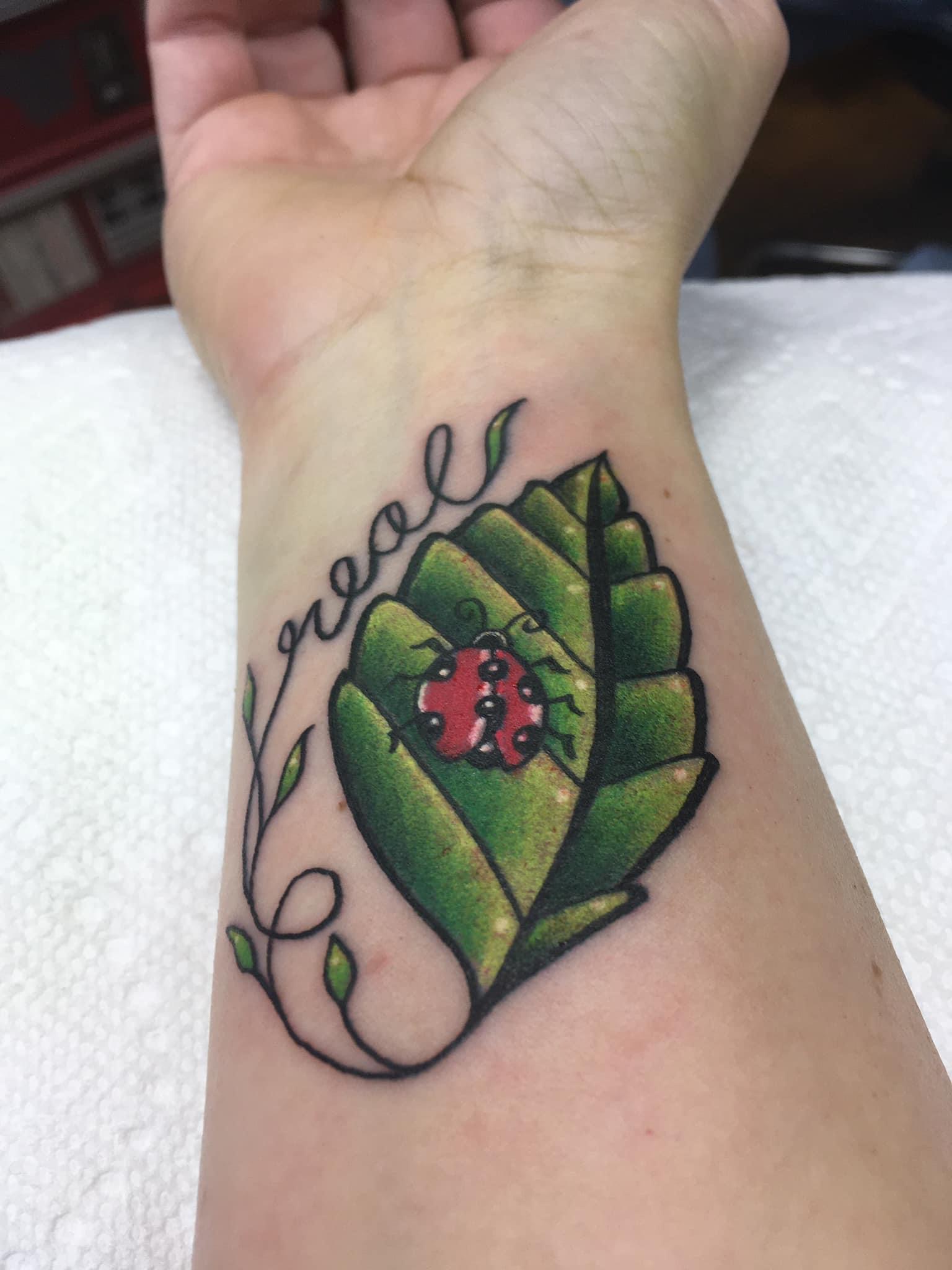 I drew this a few years ago for my wife and she had it tattooed. The tattooist changed the ladybug’s position and added a little at my wife’s request. I basically just did the outline.