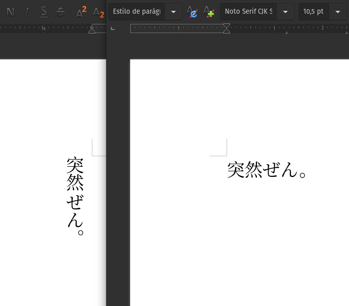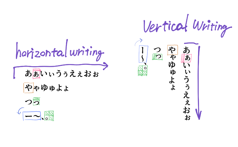 In Japanese text, there are many characters that are misaligned or rotated 90 degrees between horizontal and vertical writing(In Japanese, this is the equivalent of the English comma or period.)