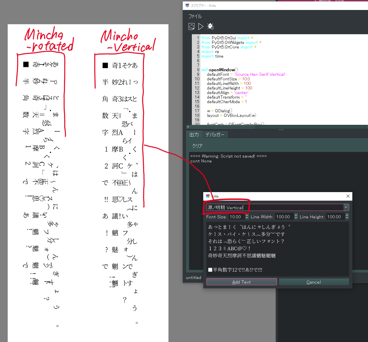 Here is the code, and the rotated font is in the github. Do note that the font probably needs to be fixed up to be on baseline and I am kind of going around that in the script for the time being.