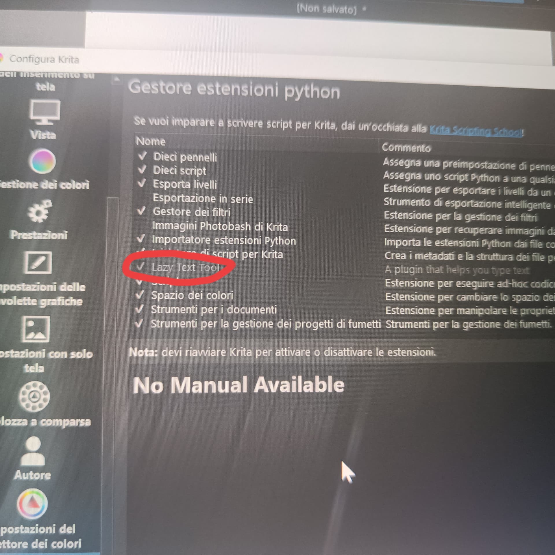 But it is activated in the Python Plugin Manager? And you confirmed the activation with the OK-Button and re-started Krita after that?