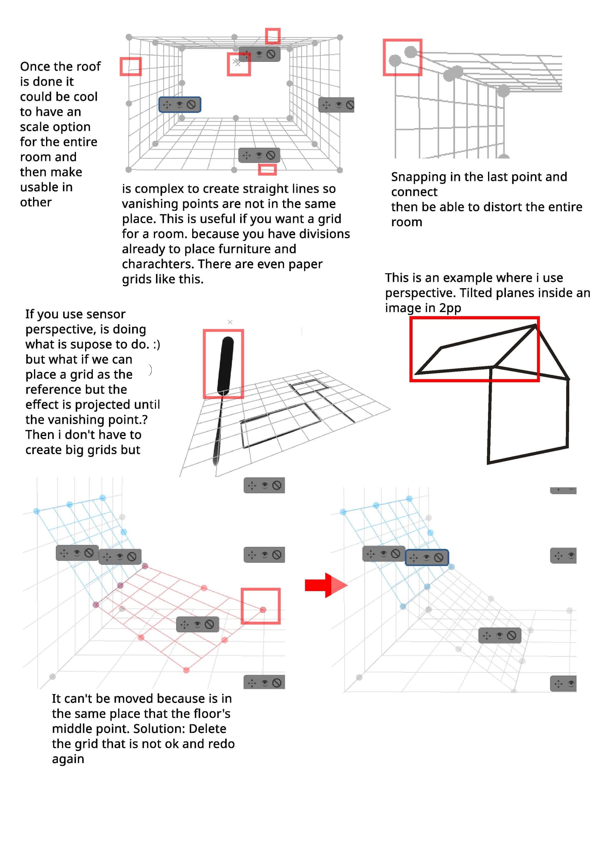 A problem occurs when you use two vanishing points… and you want them to be quite far apart, to minimize distortion. It is bad for you to manipulate the grid as it becomes huge. In traditional drawing, there is a solution for this, described in this forum.
