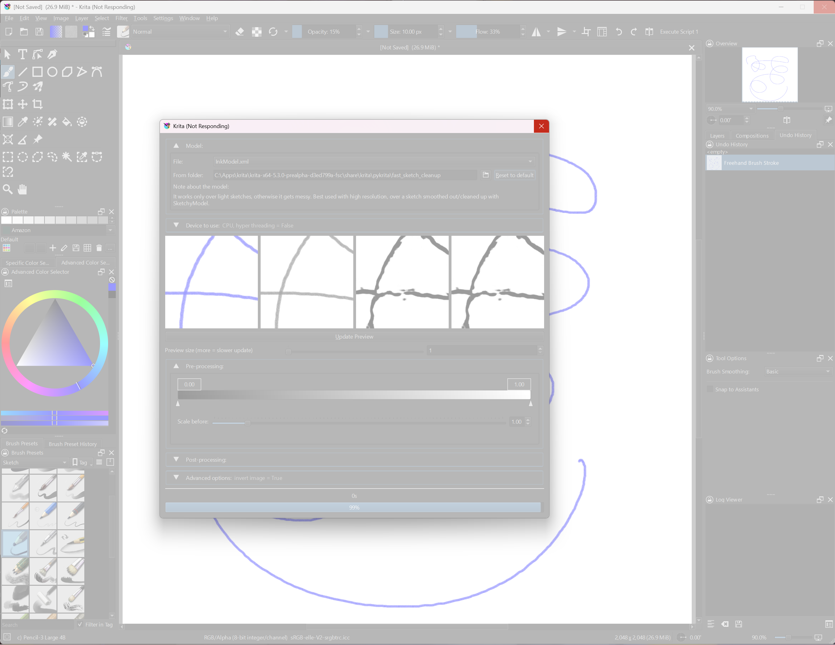 - when the processing is done, the app becomes unresponsive. I let it sit like that for good few minutes, but it stays stuck forever.