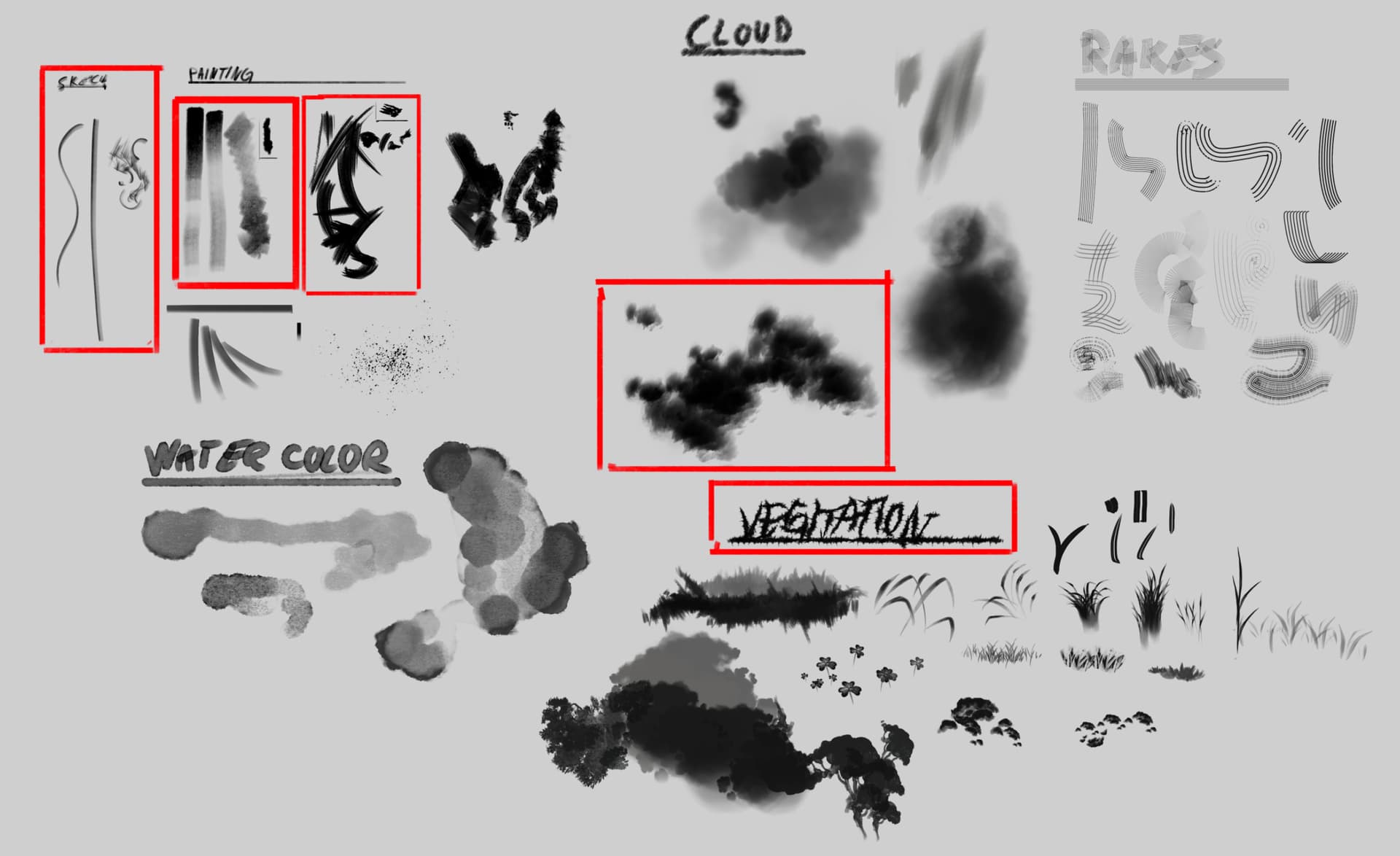 Made quickly a few squiggles with brushes I like and marked the most important ones to me with red.