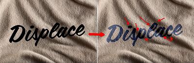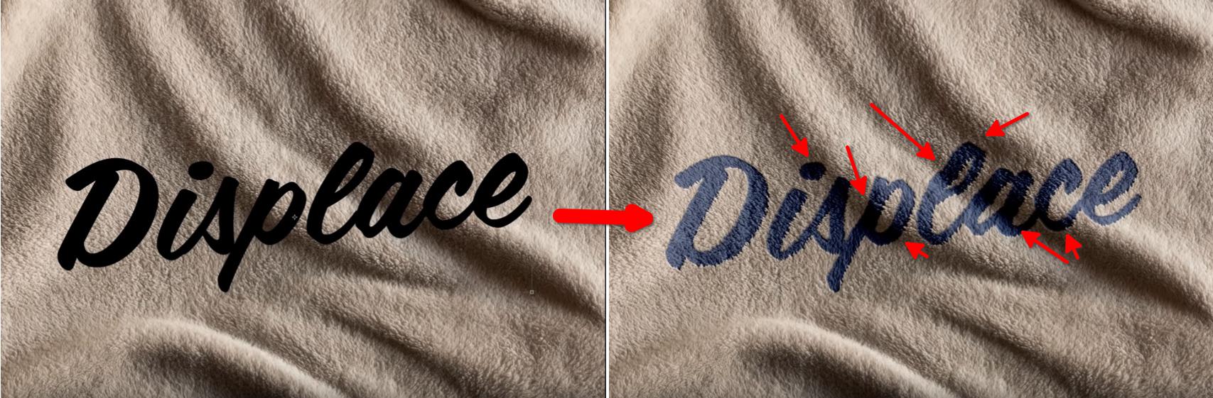 Below an example from: How to Conform Text to a Surface Using a Displacement Map in Photoshop - YouTube (see also how the displacement map made the text “furry” around the letter.