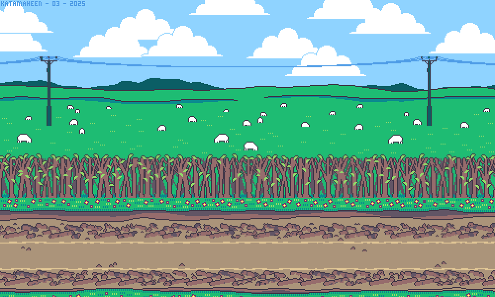 These pictures were my entries for March’s Monthly Art Challenge “Virtual Plein Air Painting”. To make them, I used this 32 color palette from Lospec: Resurrect 32 Palette