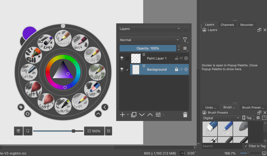 Using a combobox also lets me easily scroll through the dockers and make a video showing what they all currently look like when put in the popup palette: