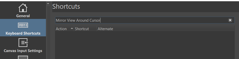 Mirror View Around Cursor is ‘Alt+M’ in the default shortcut settings.