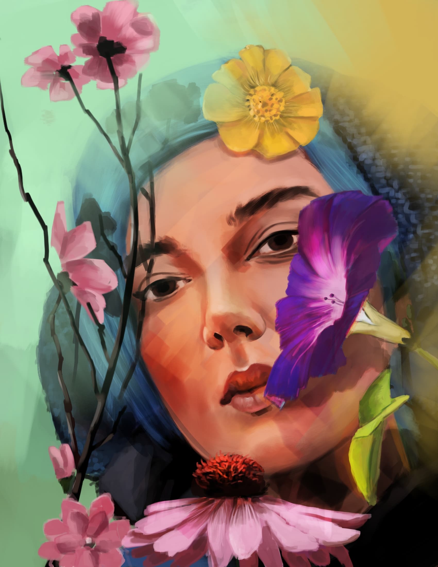 Optional: As an additional twist, think about incorporating some natural texture into your piece e.g. some real captured paint texture, or photo/scan of some organic texture. I don’t mean to use to photos in a directly representational way (e.g. a photo of leaves to represent leaves); only in a more abstract way to help achieve a more organic impression.
