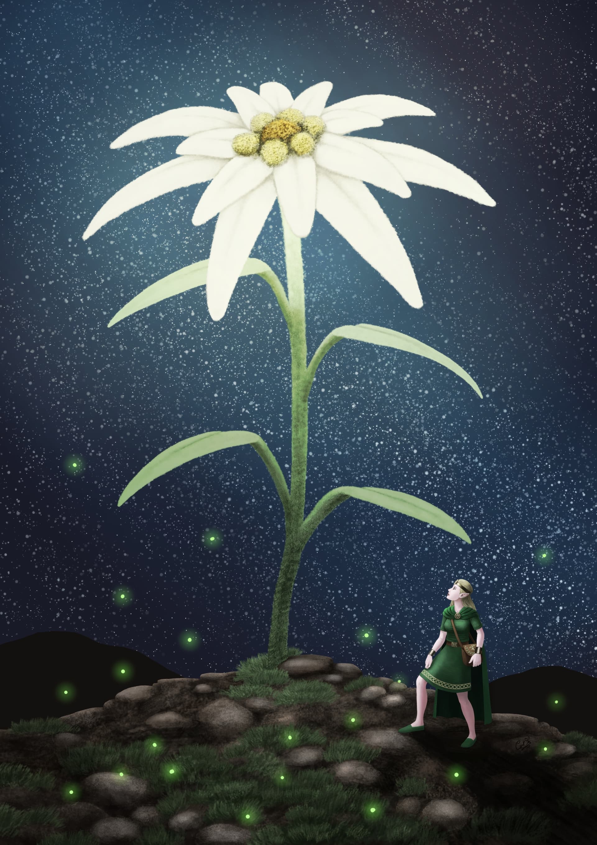 Partially inspired by the legendary Silver Tree of Valinor in Tolkien’s mythology, except here it’s just a tiny (LOL) edelweiss that can look like a star from down the mountain…