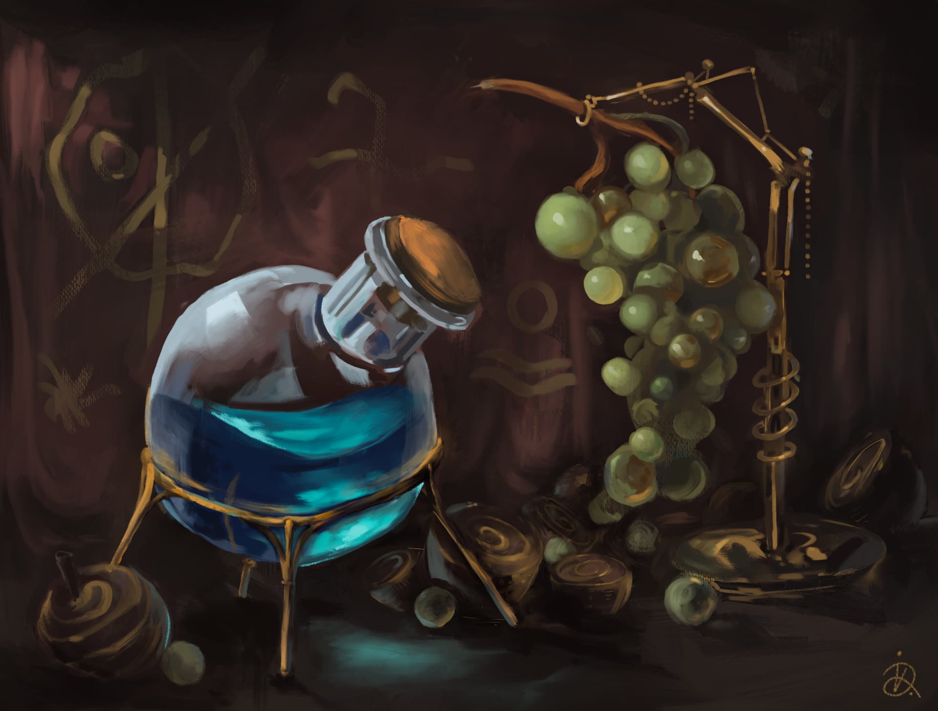 “Remarks and recipe for the potion of LEVITATION by the master Corentin Boxho (I wanted to use it as my signature, you may have noticed before that I like to blend it into the illustration when I can