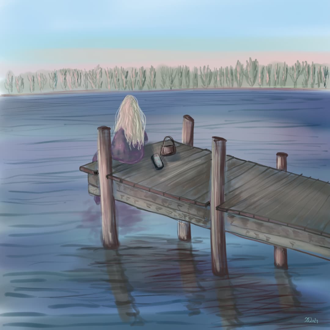 This is my entry for challenge of May. It is inspired by a picture taken at a lake nearby where I also added a person. It’s far from perfect and not quite as I imagined it to turn out, but it taught me some things that I will use in future paintings.