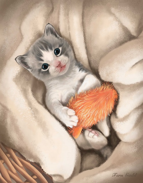 My entry for the November challenge “Fluffy”. I just don’t have time to create something new this month, so I’m assuming this entry is allowed. It’s a pet portrait I painted last year for a client , referenced from her photo. If I need to credit her name here, I can look it up. Anyway, I thought this painting met the criteria of fluffy in every aspect… from the kitten, to her toy and her blanket ![]()