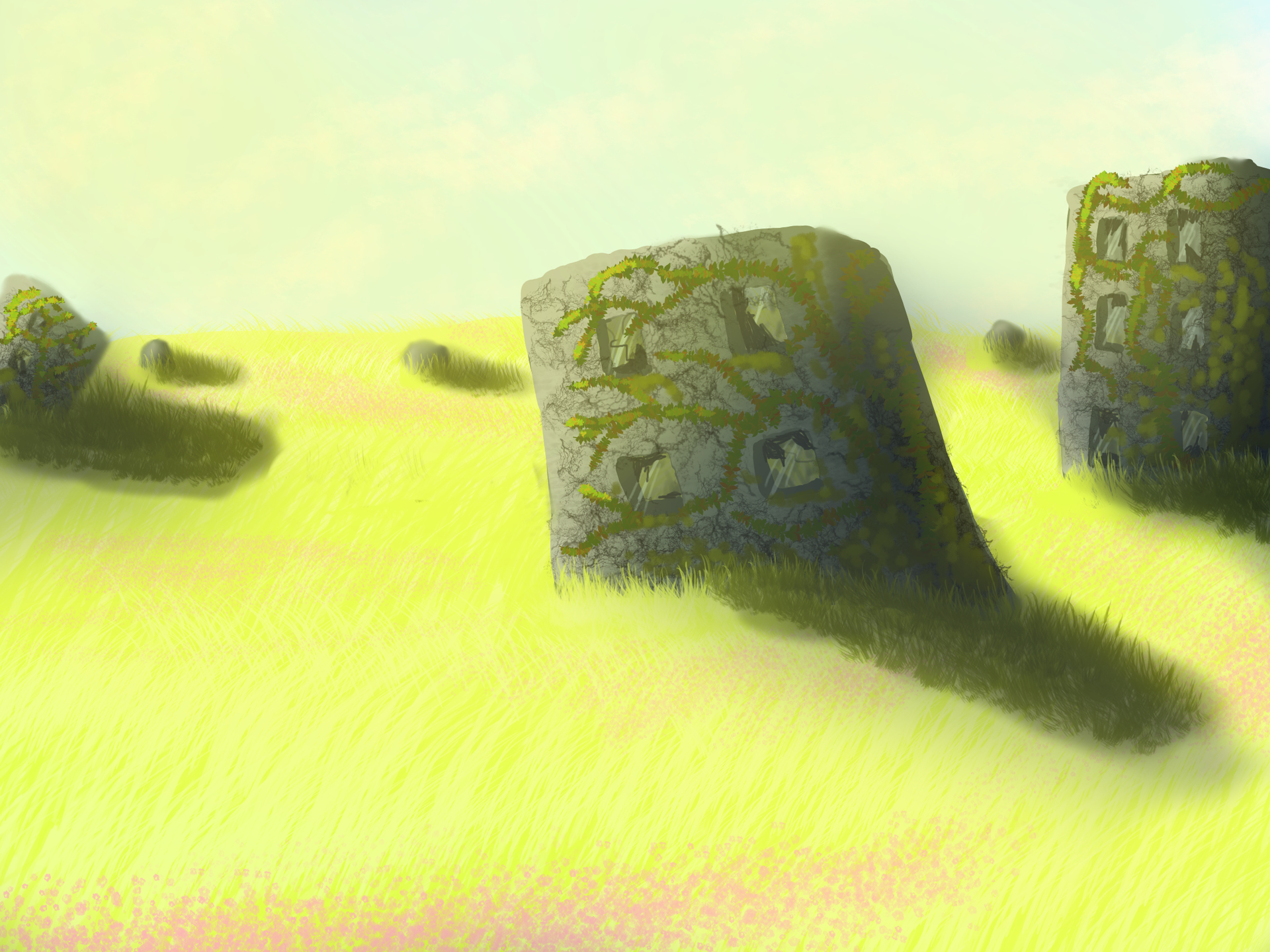 For this month, I chose an abandoned magic building. I tried to experiment a bit and not use outlines.