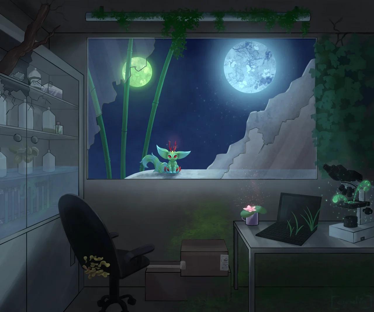 Past a door, Gwidwyn saw him, standing under the moon’s light, radiating the same magic that overflowed from the plant. A sight escaped him, finally understanding.