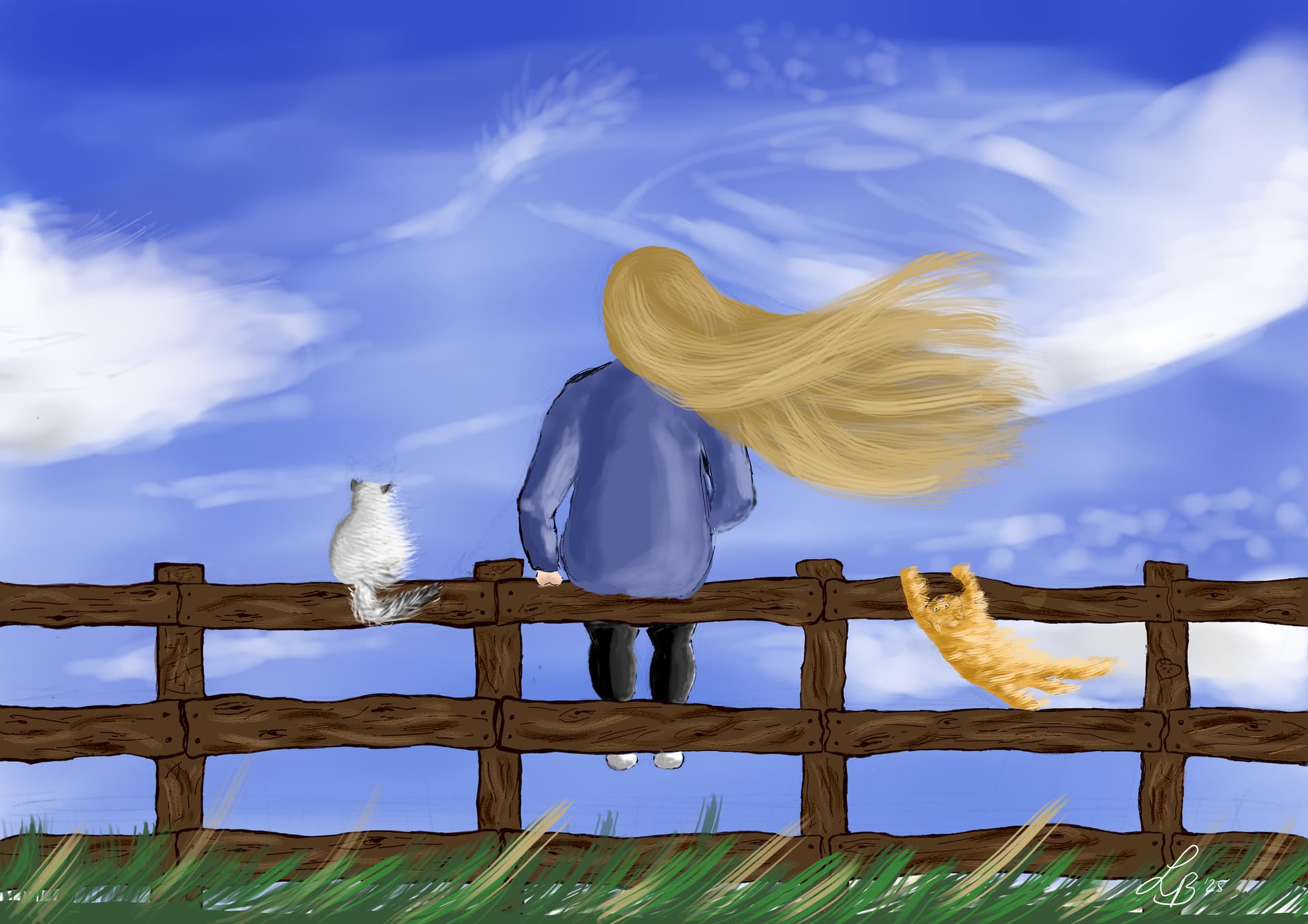 This is me with my two cats on a windy day. Guess who is the crazy one ![]()