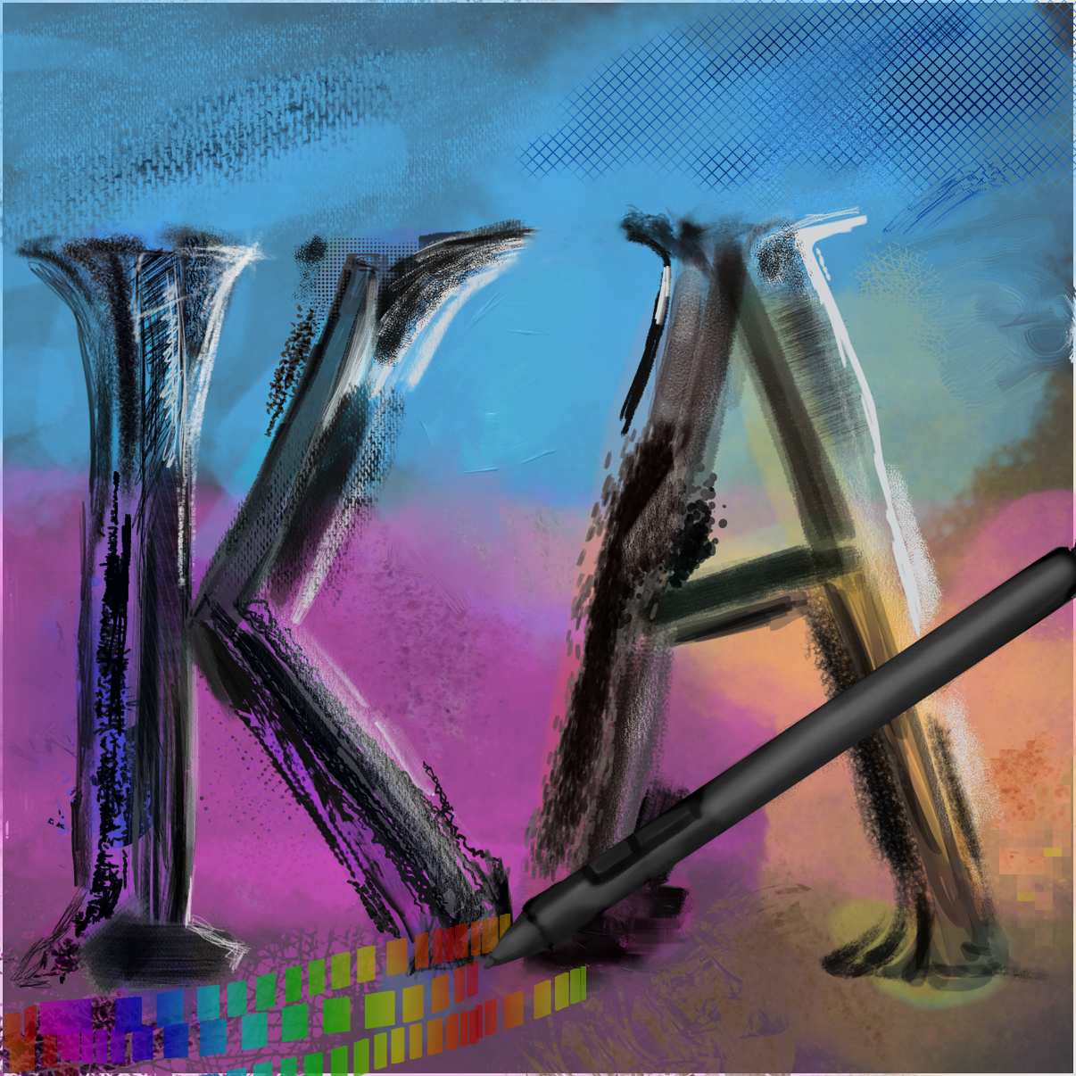 This is a bit of a tangent, but when playing with the brush I used for those rainbow pixels (modified from Rakurri v2’s ‘rdi) Fractured’), I noticed it uses a repeating time-based opacity curve to make that split brushstroke effect. And I thought, what if I made a brush with non-repeating distance-based opacity, with that same all or nothing curve? Then it’s possible to make a brush that runs out of ink/paint! Krita’s brush engines have so many options, it’s easy to come across unexpected possibilities.