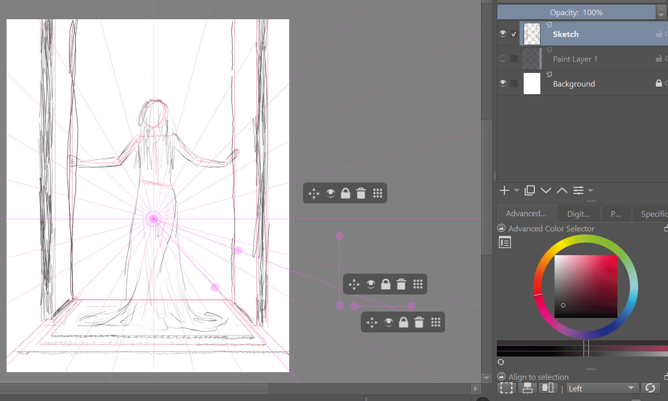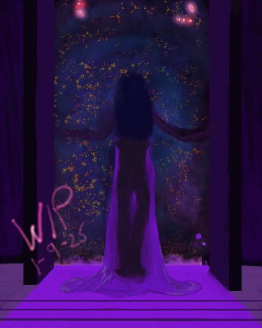 I’m not quite sure where this door will lead yet. I’m thinking it will lead to bright magical sparks or energy flows flying around, maybe I’ll figure out a mist blowing in around the girl and her dress? I’m aiming for something like that. ![]()