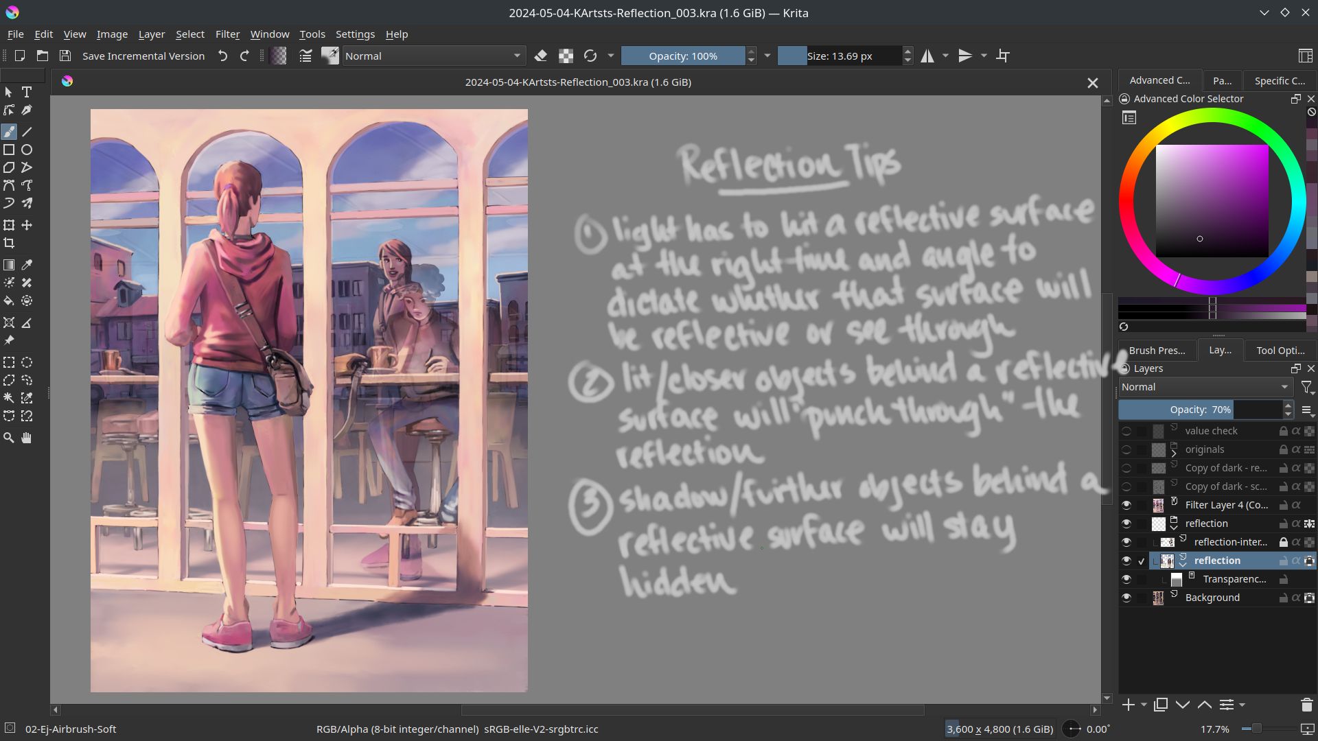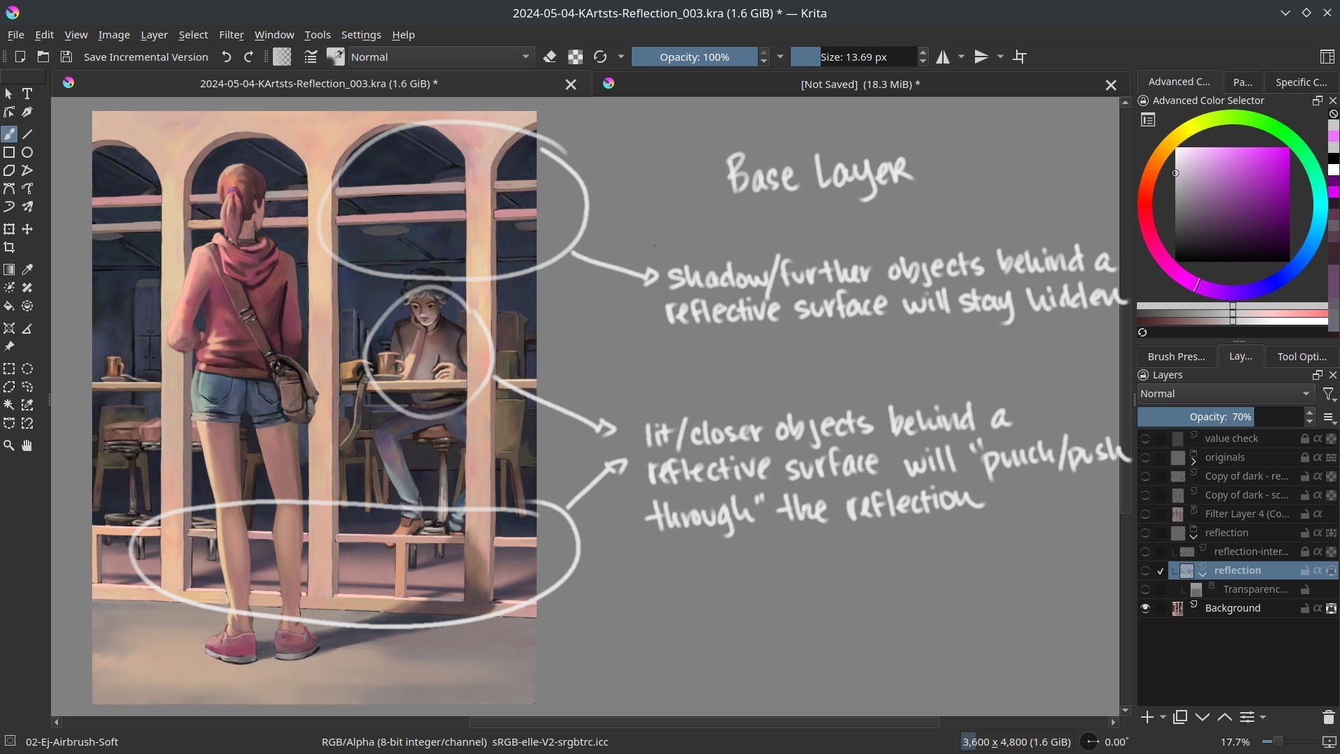 I finished, yay! Here’s some of my observations working with reflections as well as my layer breakdown for this artwork. I hope this can help somebody;