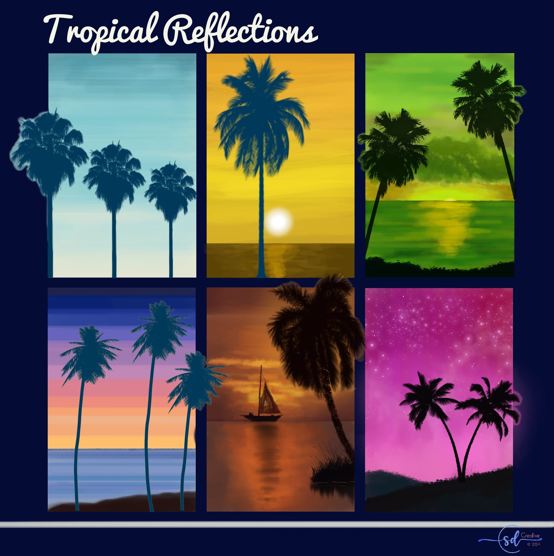 It looked like a fun idea so I made a few palm tree brushes (10 to be exact) and got to painting. Here’s the result: