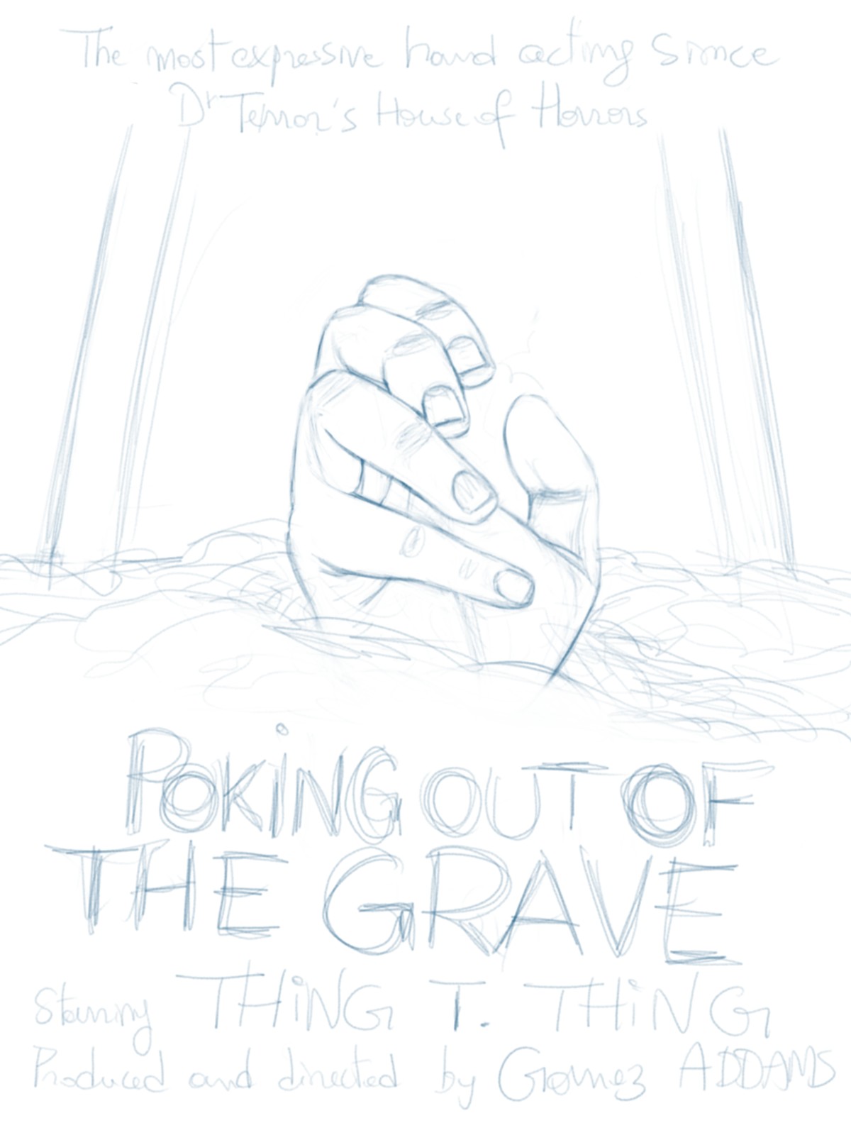 From what I know about the movies (the 90’ ones), I think Wednesday could be the director, and Pugsley one of the lead actors, playing a major scene as a victim of “the thing poking out of the grave”. The movie would end with a terrible murder (no special effects, of course). The parents would watch their children, and boast about how cute they are