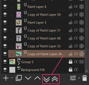 These buttons move the (selected) layer by skipping a single layer at a time.