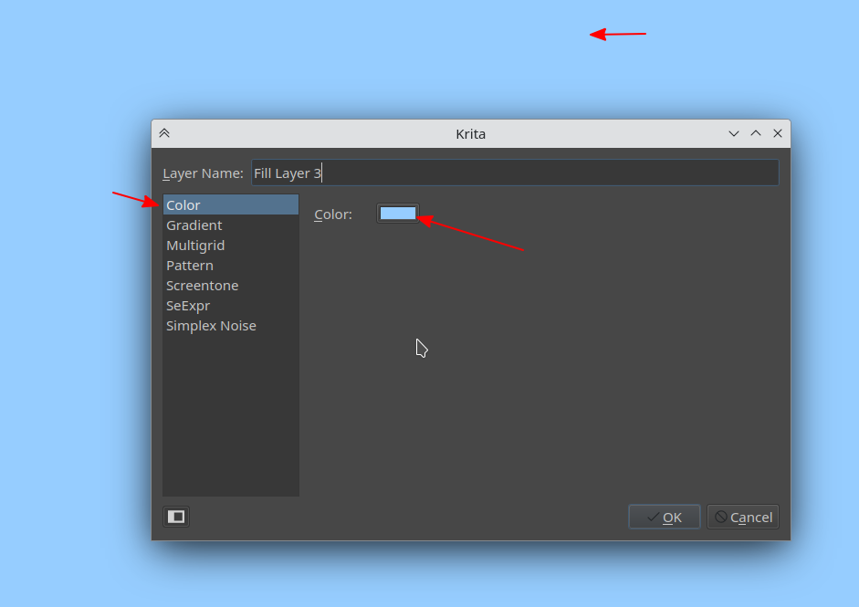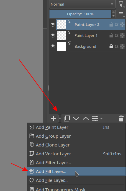 Yes, i have played with this setup. And it is getting me half where i want to be. I always try, to get things non-destructive as possible. How great would it be if i can double click this fill layer, and change the color with a slider. I use this in Photoshop for the bigger base / shapes so i can adjust it later on with minor tweaks and keep control. Any idea to get to this in a Krita way?