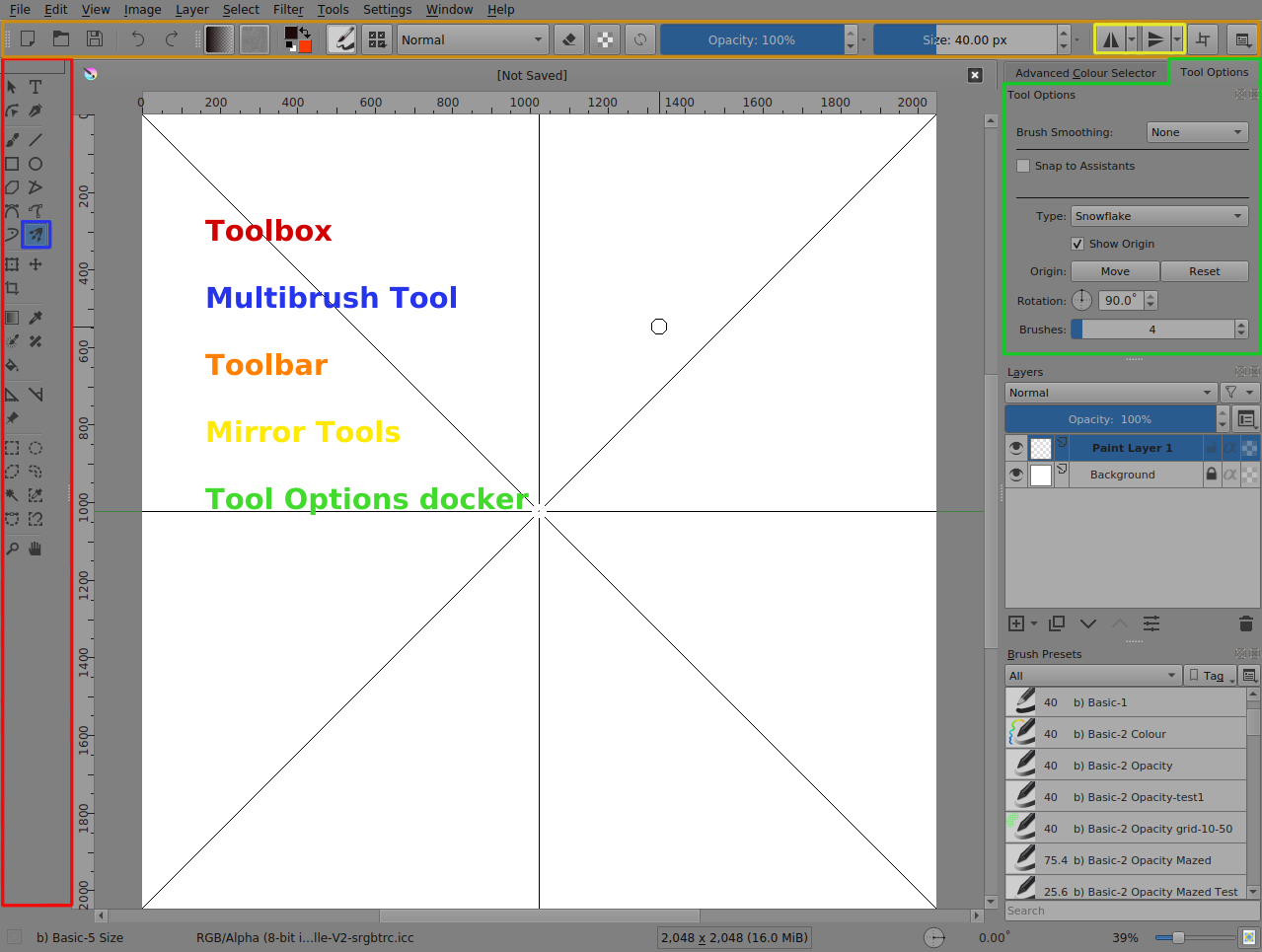 The Horizontal and Vertical Mirror Tool (modes) can also be used with the Multibrush Tool and that really is confusing if you do it, especially if you use the Snowflake Type of Multibrush with offset origins on that and the Horizontal and Vertical Mirror tools as well.