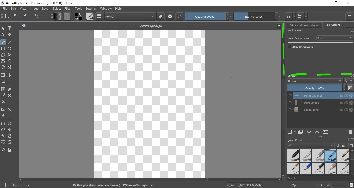 Can you post a fullscreen screenshot of your krita window to illustrate the problem?