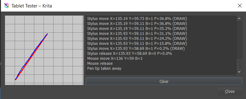 I can use the pen to click and access the buttons, and I don’t see anything wrong with the feedback from the tablet tester, which probably means it’s working perfectly fine.