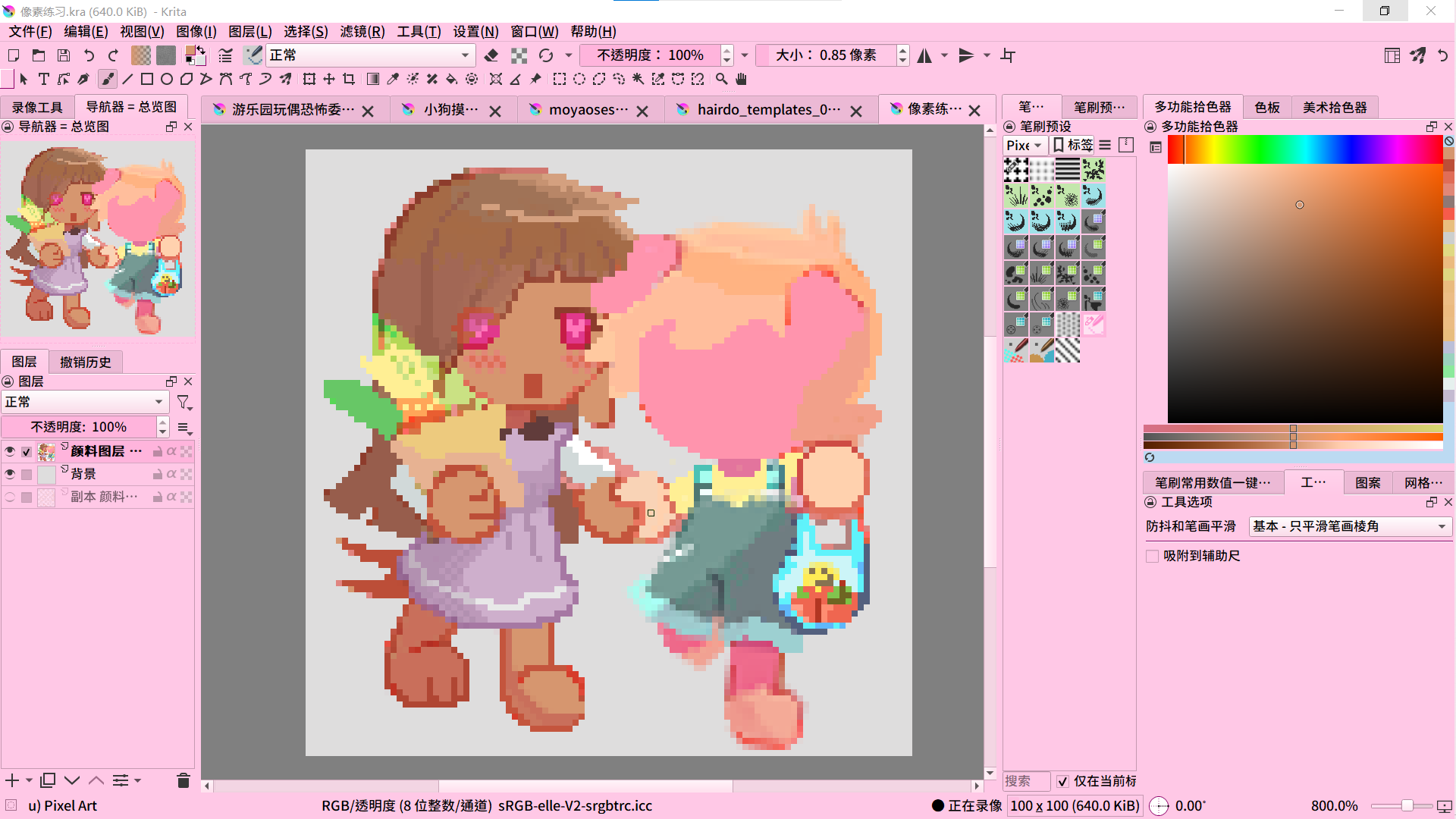 通常搜索像素画相关,都会有人告诉你用专门的像素软件去绘画去创作,但我只是想偶尔体验一下,并不想多购入很多软件让它像我的steam游戏库一样只是放置。我使用了Krita好几年,已经习惯了在Krita中作画!(顺带一提,希望Krita能尽快更新好用便捷的文字工具)