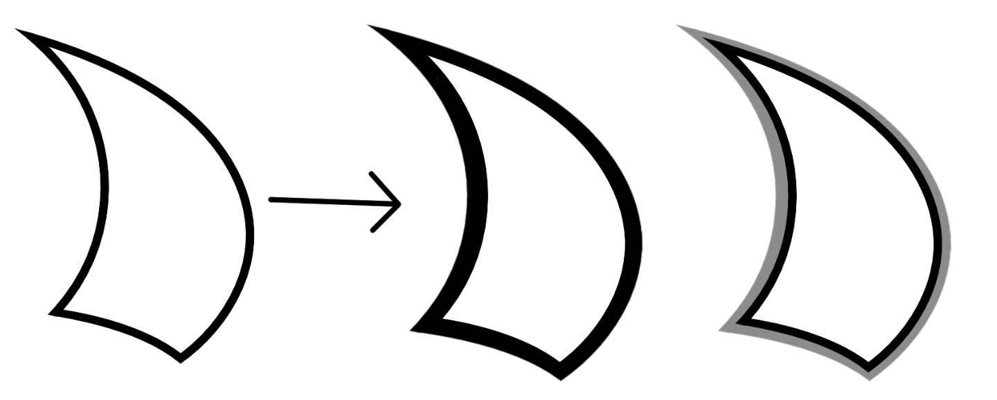 I would also have to do some erasing to make things neat. Finally, I would merge all the “pieces” together to form a single layer, containing the outline for the shape.