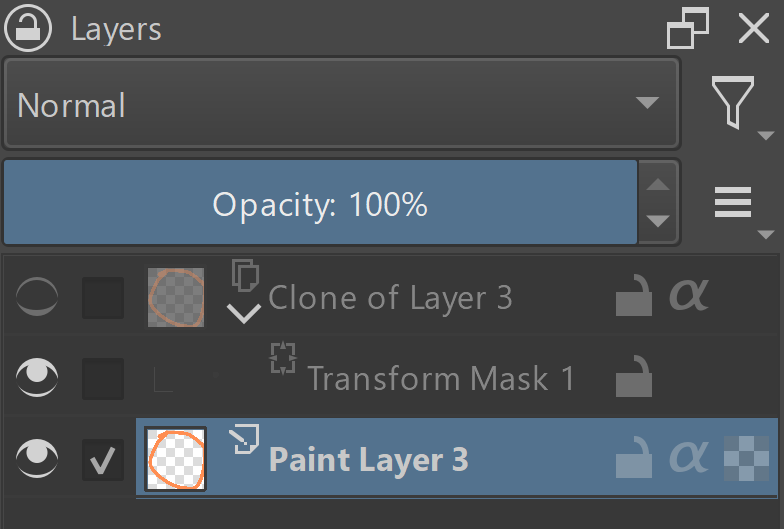 “Clone of Layer 3” is a clone of “Paint Layer 3” and is set invisible. The user paints something on “Paint Layer 3”, what should happen to the clone?