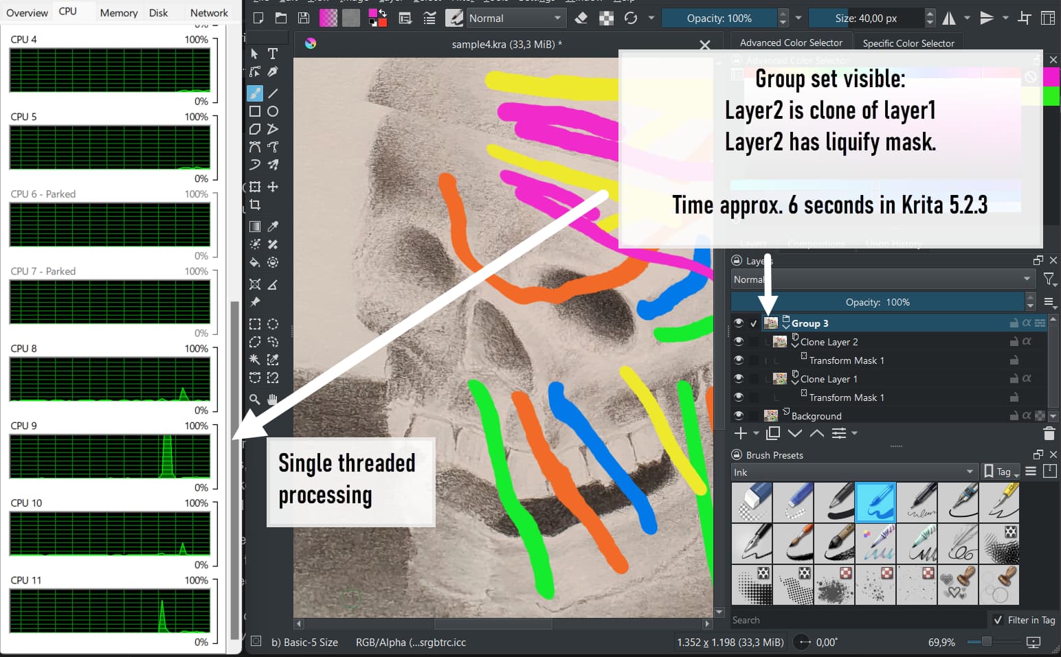 I’m still technically learning Krita and especially how to make it work for my workflow (lots of layers). I prefer my clones rebuilt instantly, so background refresh is OK. I may be biased because I open my heavy projects on a relatively fast PC workstation.