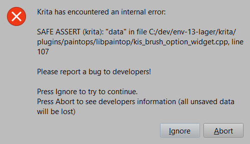 There’s a warning about Failed to load embedded resource KoResourceSignature("patterns", "", "", "") when switching to a brush that uses the Texture Strength option without using the Texture Pattern option (“b) Basic-5 Size Opacity”, for instance, or all of the default Stamp brushes), but only after using a brush with a Texture Pattern first.