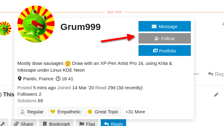 There was some demand from users to have some kind of follow feature, where you can follow a user and get notified when they post. Seems like there is an official discourse plugin for it. I have enabled it and you can no follow users by clicking the follow button on their profile or on the profile card that pops up when you click on their avatar.