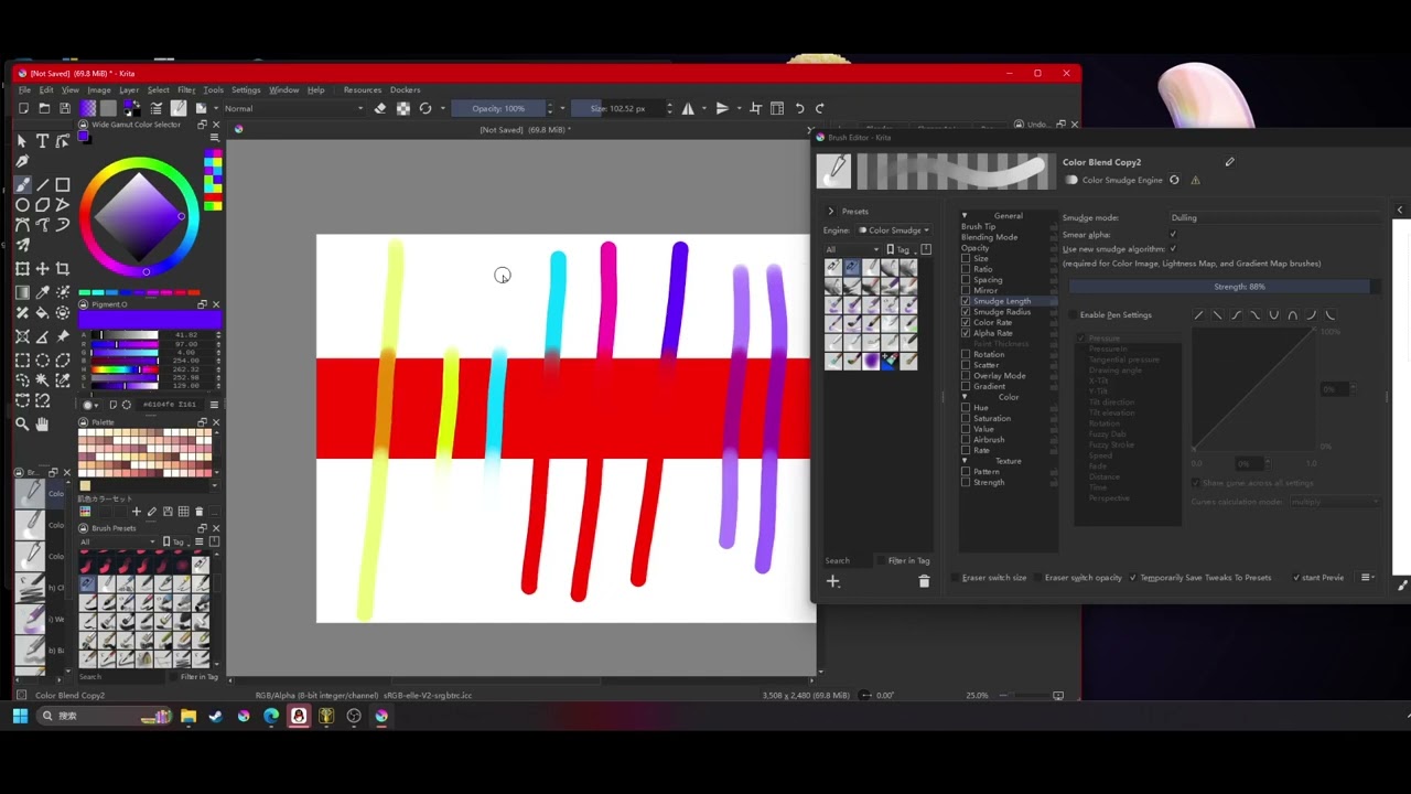 3.As mentioned earlier, Killy is busy with work, so it’s difficult to find time to better integrate it into Krita. (Especially considering that the smudge algorithm in 5.0 may even lead to rewriting the engine…)