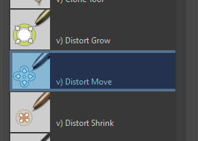My apologies. I misnamed it (them). My favourite is the v) Distort Move brush. But there is also Distort Grow and Distort Shrink.