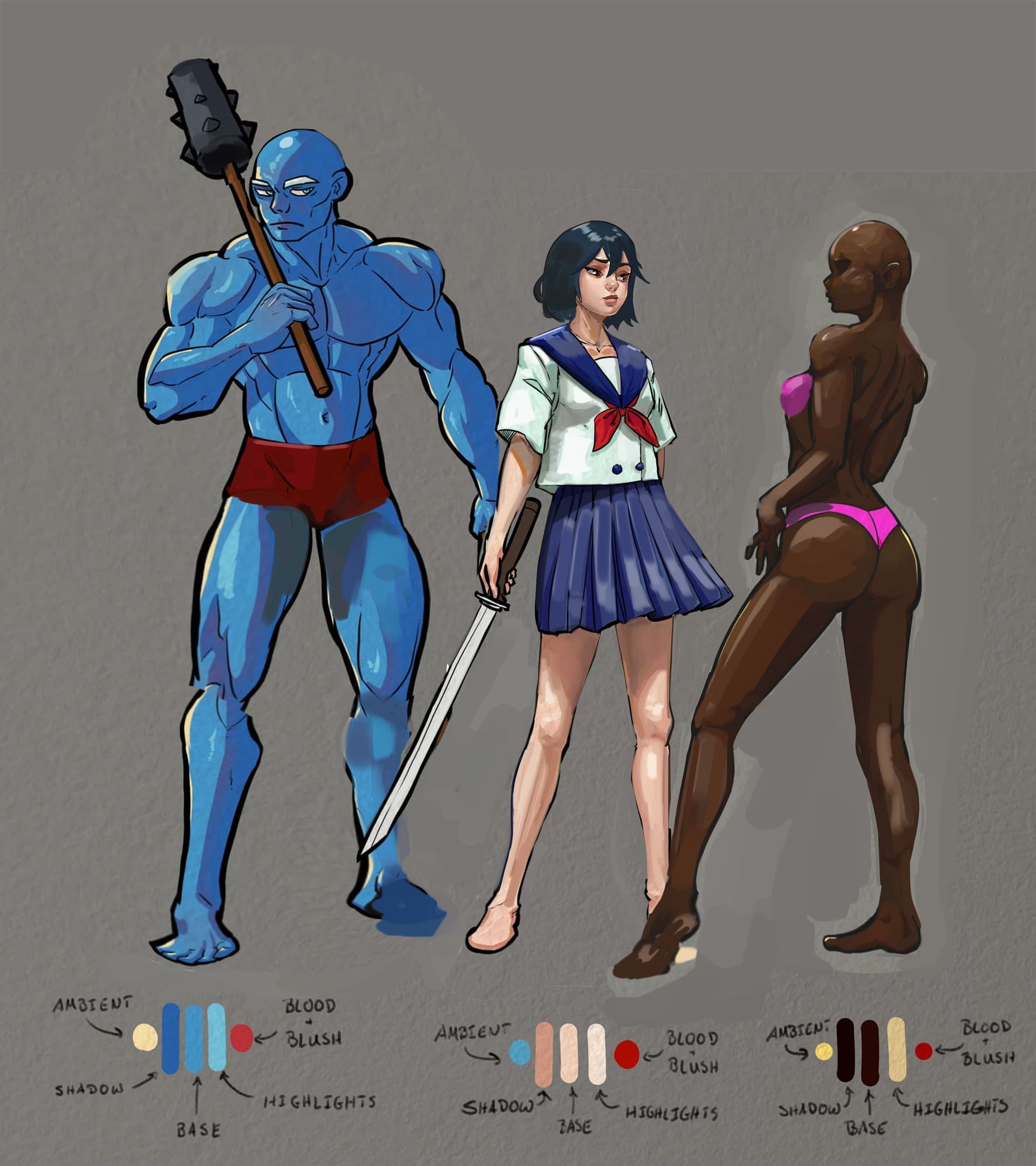 I really like what you did with the middle one. The smirk on her face and the sword makes for an unpleasant combination.