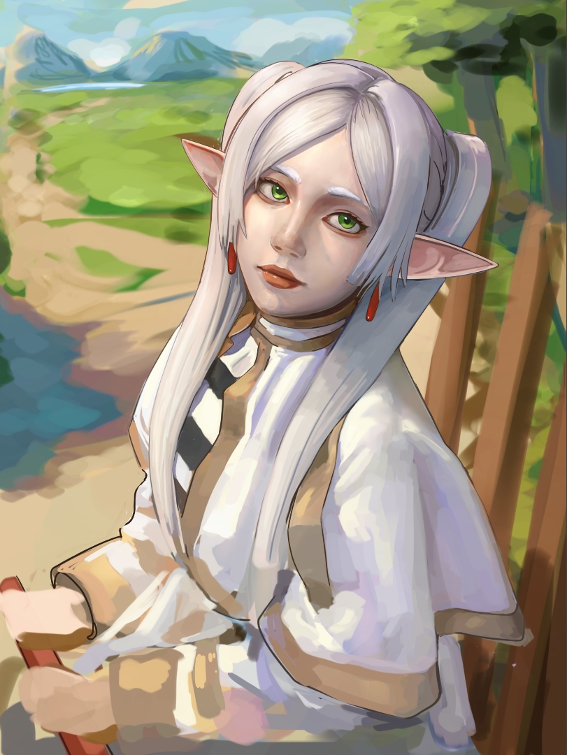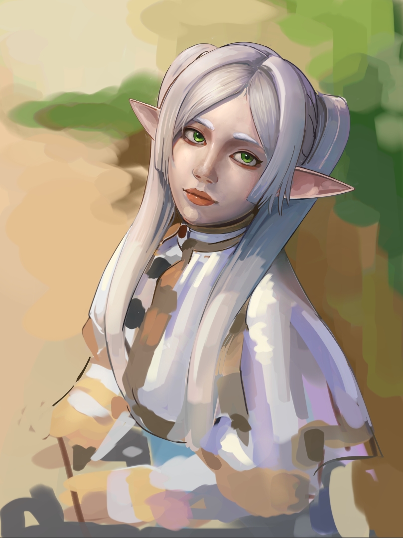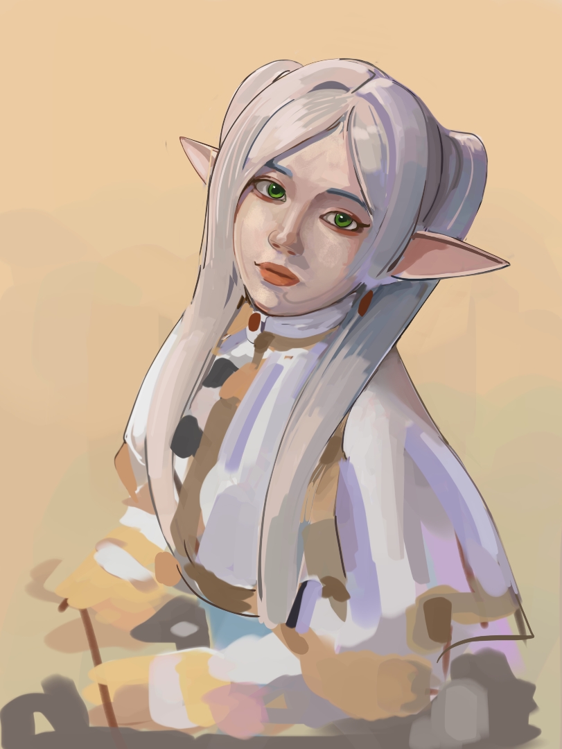 This give me an idea what to test next. Since I don’t have much experience with not so common angle of view, if I were to draw extreme angle perspective then pull the reference away mid process, will I automatically normalize the perspective also? This would explain my problem with unifying a perspective of objects that previously draw in different perspective (my previous Frieren drawing).