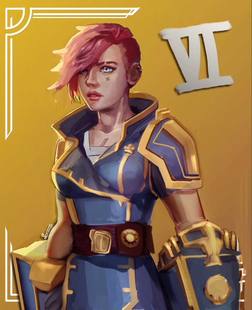 The Arcane Vi edit looks good too, though you sure changed the character a lot, and unless I’m imagining it, you also subtly changed perspective. The original gives me this impression of looking slightly up from about waist height (though the inaccurate transitions from neck to jaw and torso somewhat ruin the impression, I think), yours looks more like shoulder height to me.