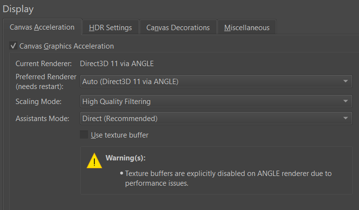 You might want to check Configure > Display > Canvas Graphics Acceleration. Or update your drivers.