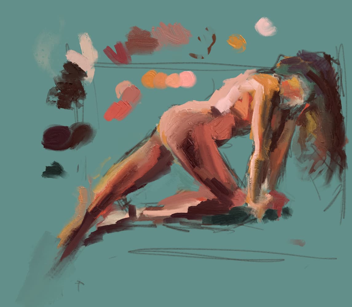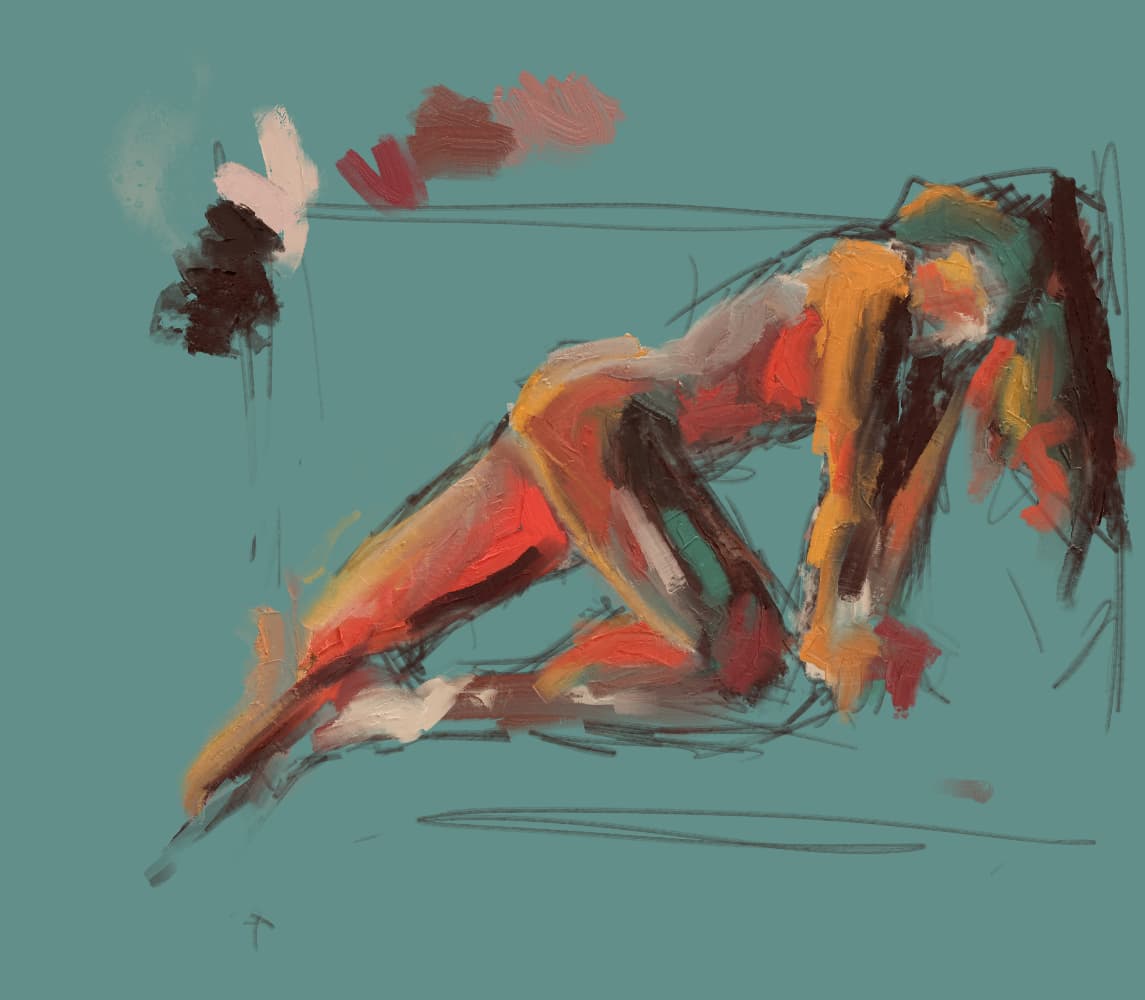 Going through my old art to post on my website and came across this figure sketch I painted that I still really like. Love how the colors pop against the teal background.