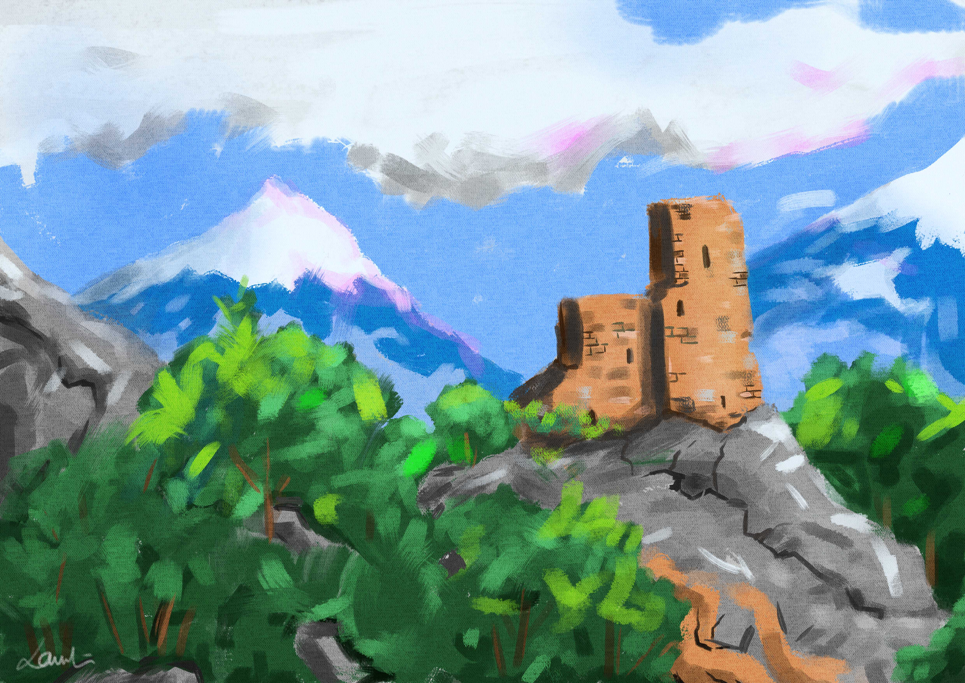 A traditional treatment for this painting : less brushes, less colours as possible, as if I was outside with my canva.